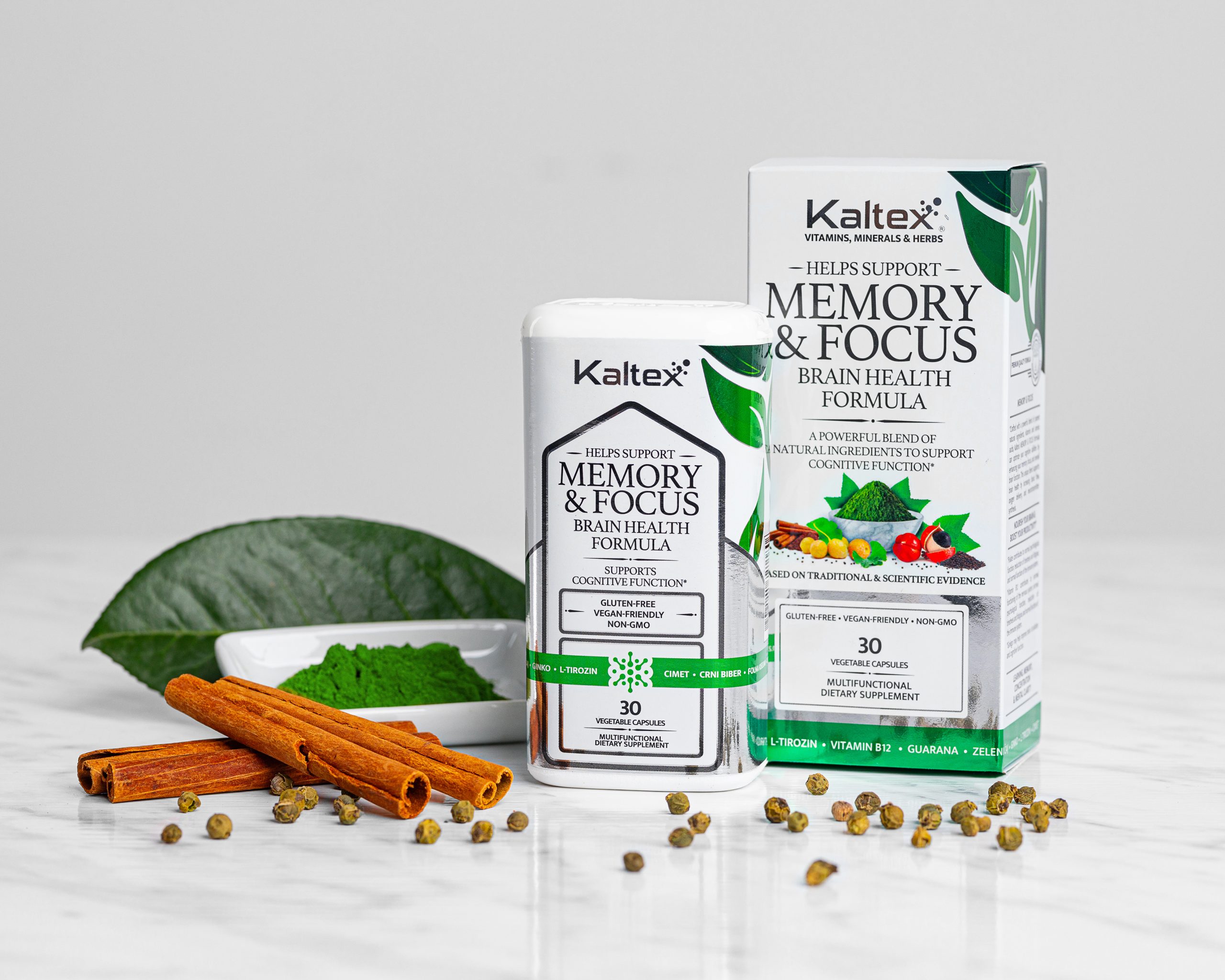 Memory & Focus suplement namenjen je poboljšanju mentalnih sposobnosti, koncentracije i produktivnosti. Kombinacijom najvažnijih vitamina, minerala i biljnih ekstrakta, Kaltex® Memory & Focus formulacija pozitivno deluje na fokus, pamćenje i opšte funkcionisanje mozga. Redovnom upotrebom, multifunkcionalni dodatak ishrani će podržati nervni sistem poboljšanjem cirkulacije, transporta kiseonika i sinteze neurotransmitera.